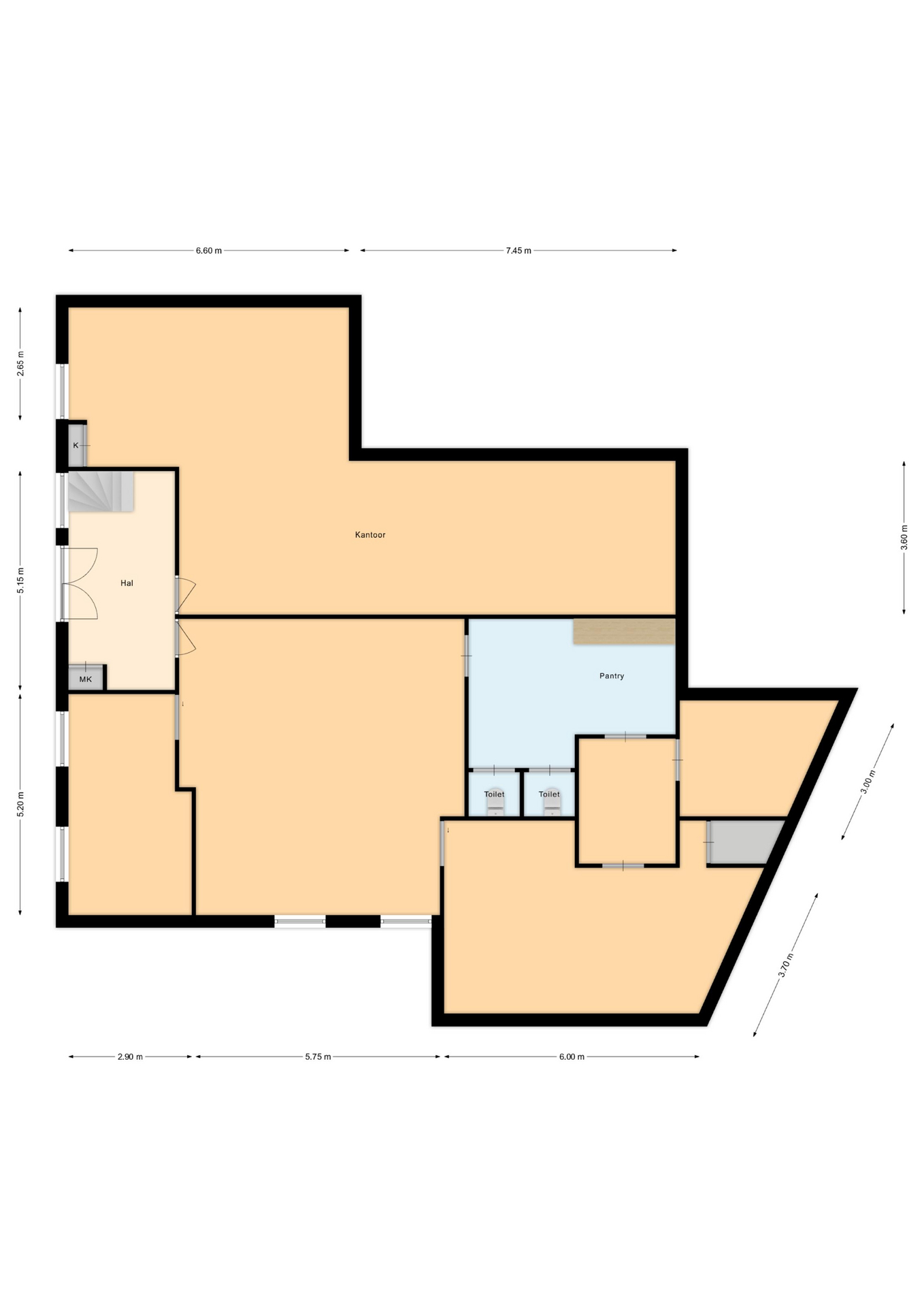 De grootte van de kantoorruimtes variëren tussen ca. 74 m² en ca. 68 m² inclusief algemene ruimtes. De gemeenschappelijke ruimtes zijn o.a. voorzien van een pantry en toilet. Tevens behoort het gehuurde één parkeerplaats per kantoorruimte.