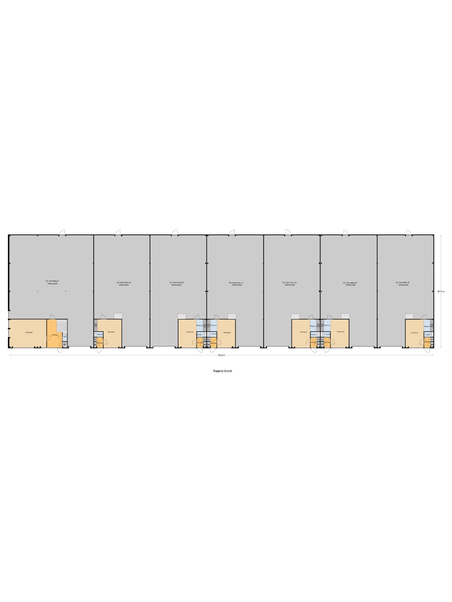De kantoorruimte is gesitueerd aan de voorzijde. Aan de voorzijde is een grote raampartij gesitueerd waardoor er veel daglichtinval is. Dit maakt de kantoorruimte een zeer prettige werkomgeving. De kantoorruimte is reeds voorzien van een toilet en pantry. Verwarming van de kantoorruimte geschiedt o.b.v. vloerverwarming in combinatie met een warmtepomp. De bedrijfsruimtes worden op éénzelfde wijze verwarmd. Het object is geheel gasloos.