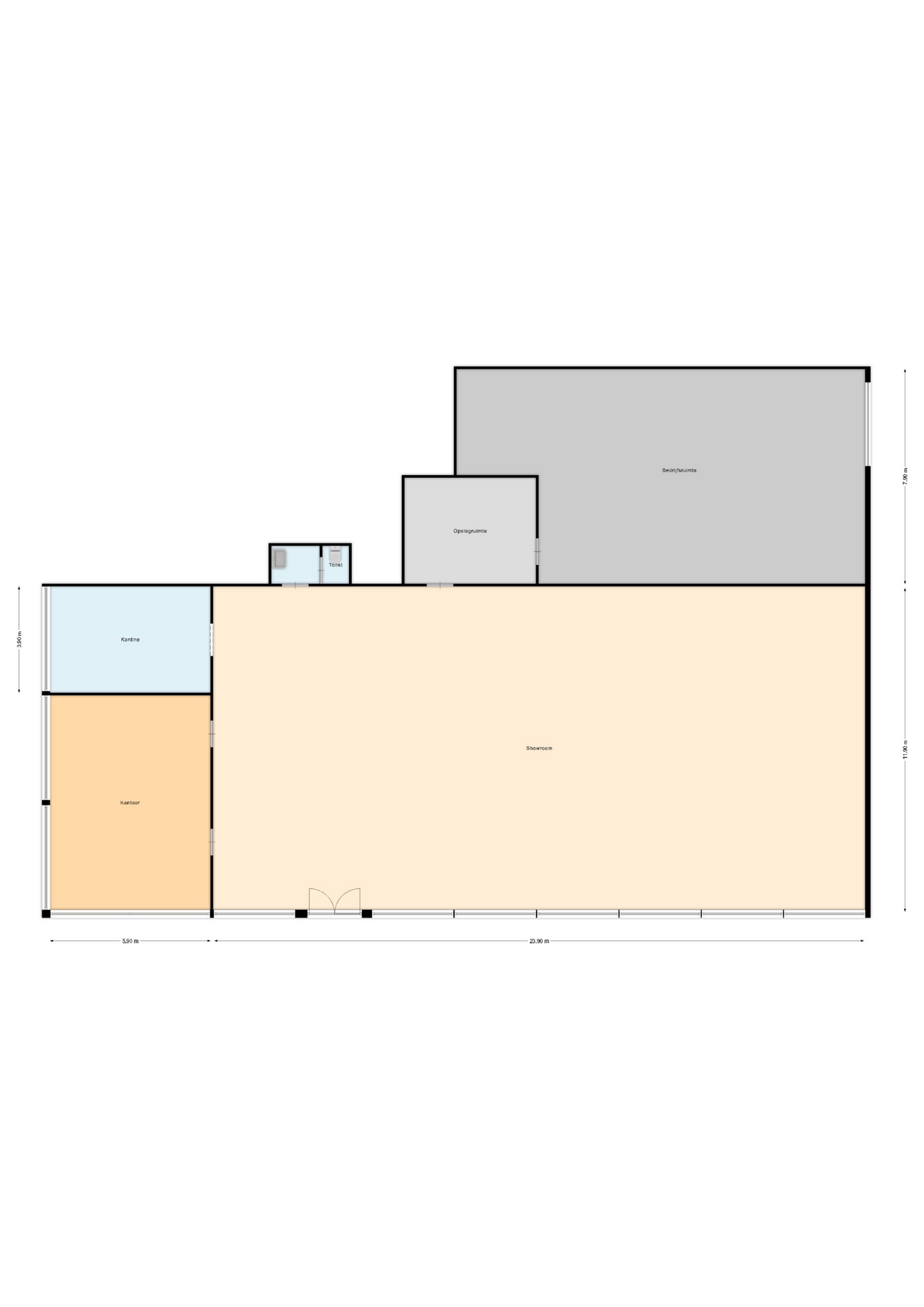 Aan de achterzijde van de showroom, op de begane grond, bevindt zich een royale bedrijfsruimte met een oppervlakte van circa 102 m² en een vrije hoogte van circa 5,2 meter. De bedrijfsruimte kan vanaf de buitenzijde worden bevoorraad.