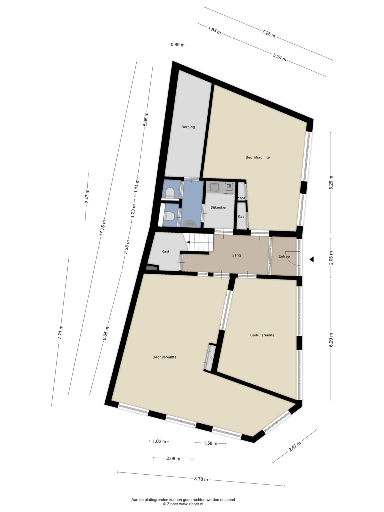De totale oppervlakte van de kantoorvilla bedraagt ca. 260 m² verdeeld over de begane grond, 1e verdieping en 2e verdieping. De begane grond omvat een aantal kantoorkamers evenals een pantry en toilet. Op de 1e- en 2e verdieping is een open indeling waardoor de ruimtes op diverse wijze benut kunnen worden. Op de 1e verdieping is een royaal dakterras gesitueerd met een oppervlakte van maar liefst ca. 50 m².